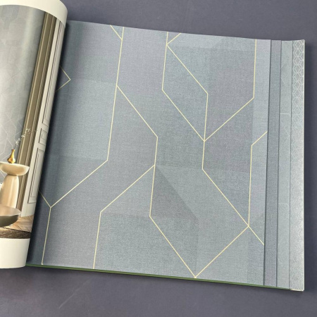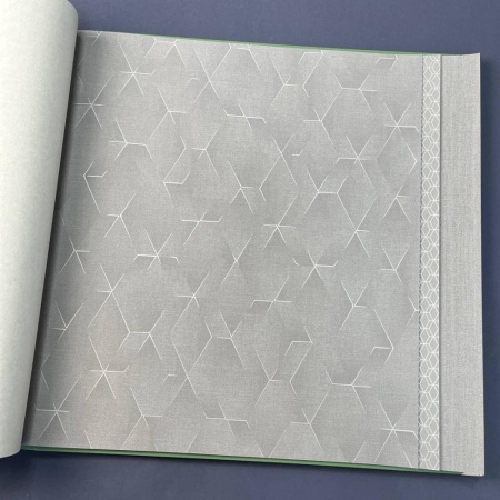 В данной коллекции обоев представлены три акцентных дизайна, созданных на основе идеальной гармонии и ритма. В первом дизайне присутствует смелый и энергичный геометрический рисунок с 3D-эффектом. Во втором дизайне крупные графические фигуры динамично переплетены между собой, а также присутствует орнамент «trellis» небольшого размера, который визуально выглядит очень легким и полупрозрачным. Цветовая гамма каталога вдохновлена разнообразием оттенков натуральных камней. В центре палитры находится нежный, хрустальный серебристо-голубой цвет, окруженный пастельным нефритово-зеленым, мягким графитово-серым и теплыми песочными оттенками. Геометрические паттерны в этой коллекции дополняются двумя фоновыми моделями, которые повторяют фактуру текстиля. В сочетании с естественными оттенками они гармонизируют и смягчают строгость и уравновешенность фигур, придавая пространству домашний уют.