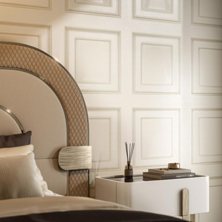 Сет «Палаццо» продолжает тему дворцовой роскоши, в мотиве которого можно увидеть распространенный для этого стиля дамасский узор с крупными цветами. Богатое тиснение придаёт им объём, а на поверхности сверкают золотые блики, за счет чего в помещении создается утонченная атмосфера для создания традиционной или же современной классики.